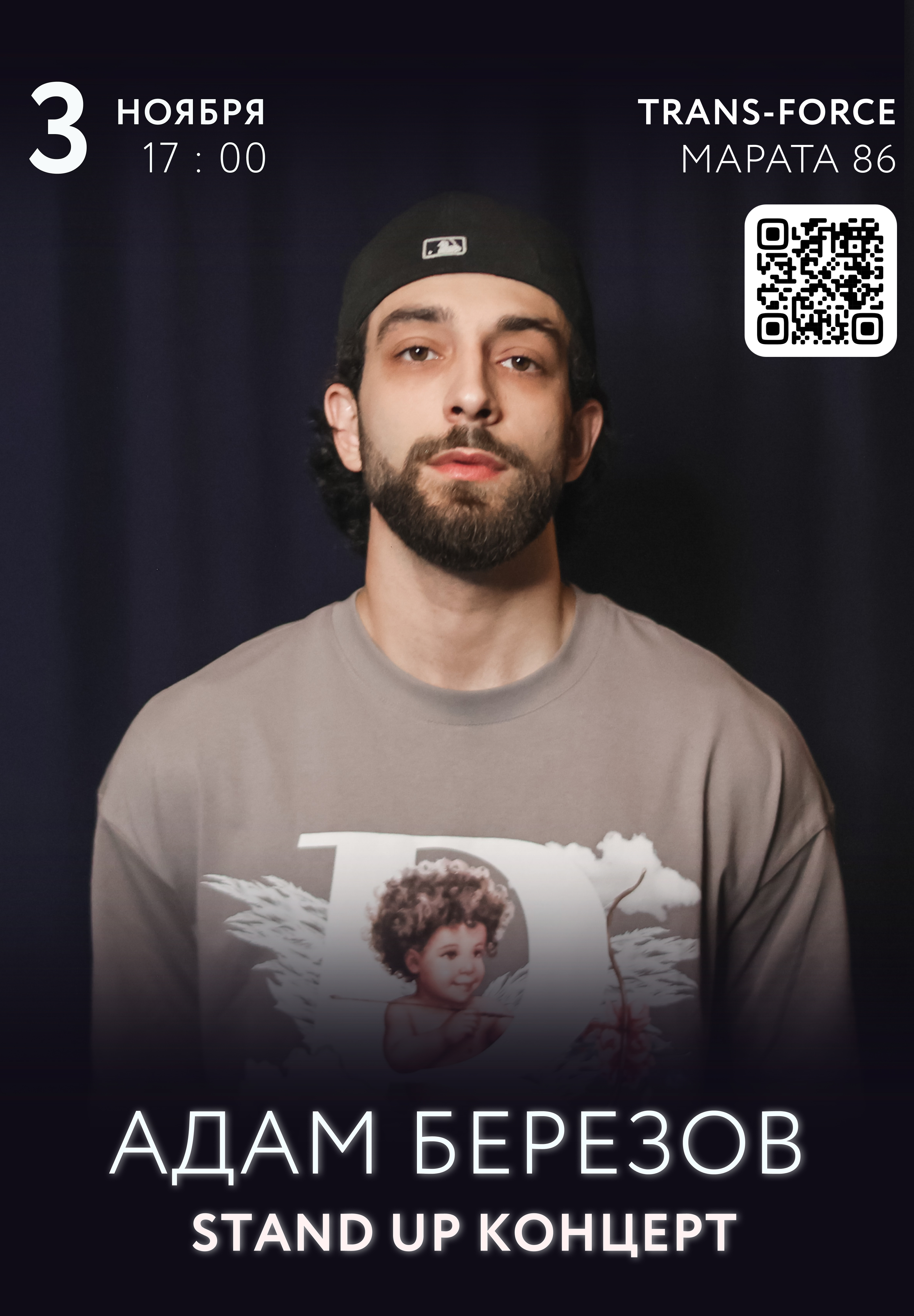 Адам Берёзов — один из самых активных на сцене комиков, немного блогер, немного актёр, резидент бара «Stand Up Патрики», участник «Comedy Battle» на ТНТ.