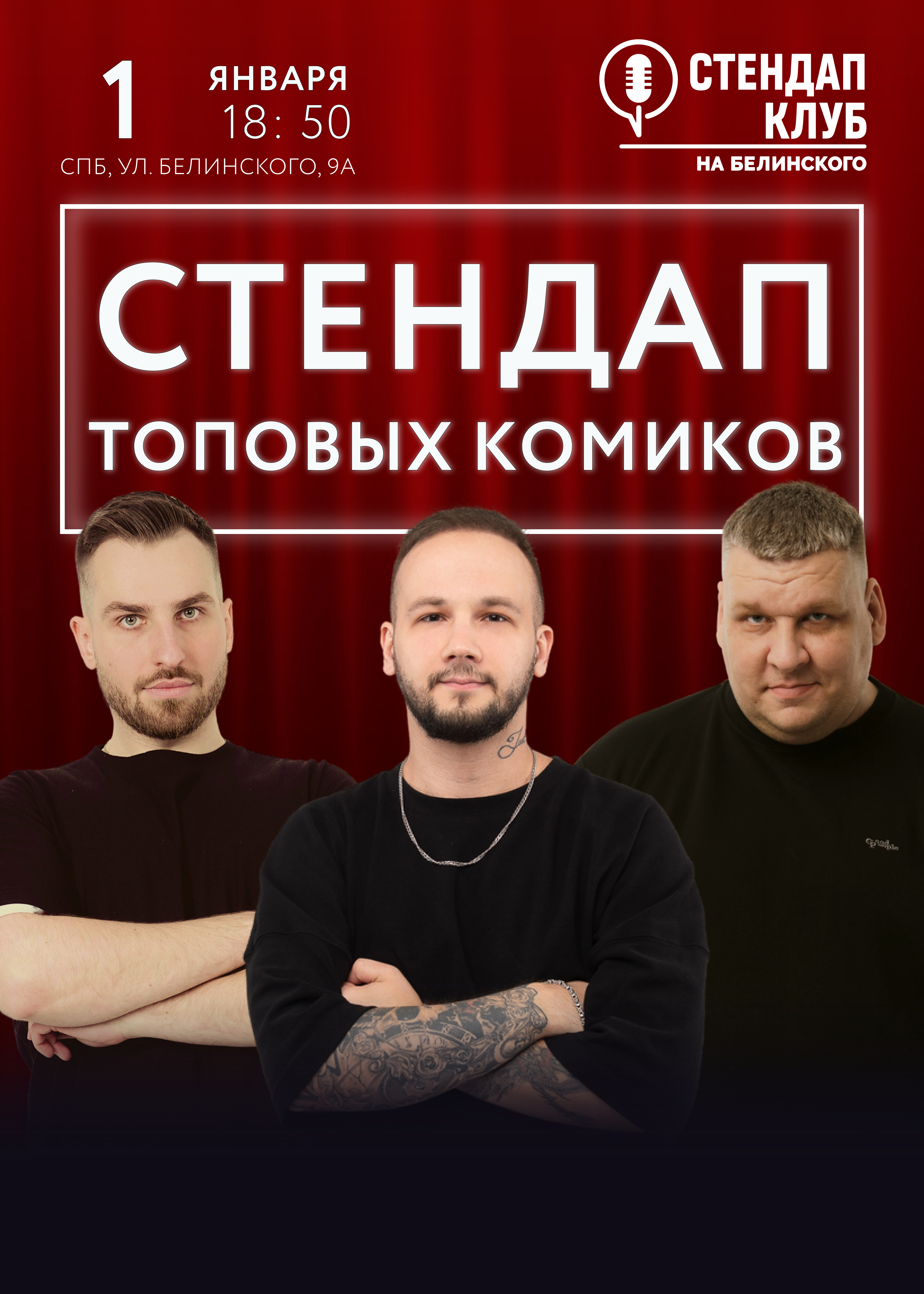 Комики с ТНТ, СТС, Labelcom выступят «без цензуры» со своими лучшими и свежими шутками. В составе только лучшие из ТОП 10 комиков Питера. Вы погрузитесь в атмосферу настоящей, живой стендап комедии от самых опытных комиков Санкт-Петербурга и Москвы, с большим бэкграундом и эфирами на телепроектах ТНТ, СТС и Ютуб! Так же на мероприятии будет призовой розыгрыш для участников.