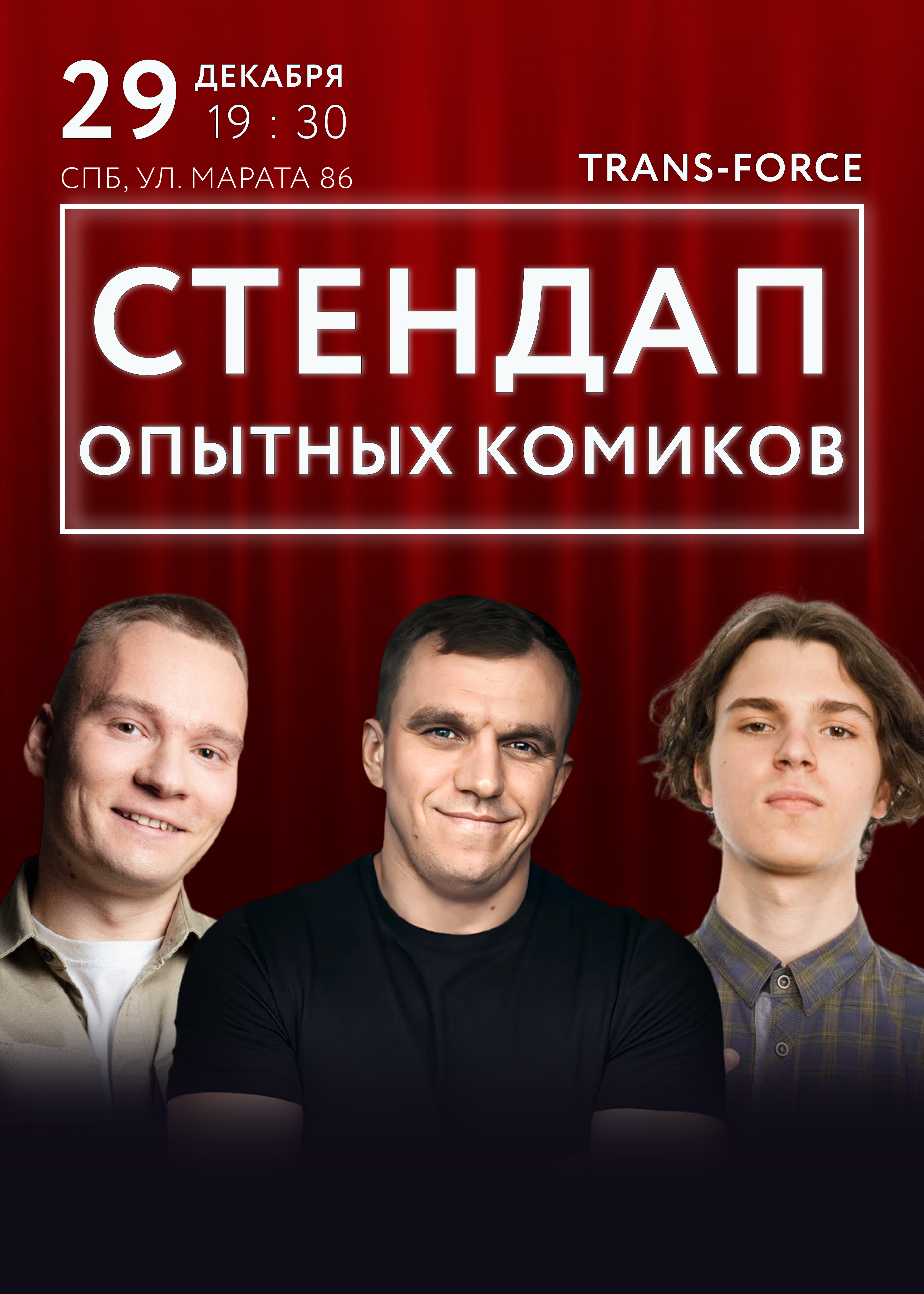 Только опытные, топовые комики СПб и МСК, участники популярные ТВ и Ютуб-шоу, ТНТ, СТС, Labelcom, состав скрыт, это профессионалы петербургской и московской стендап-комедии. Выступят 4 комика с более жёсткими, чёрными шутками. С пятницы по воскресенье — только отборный и проверенный материал.