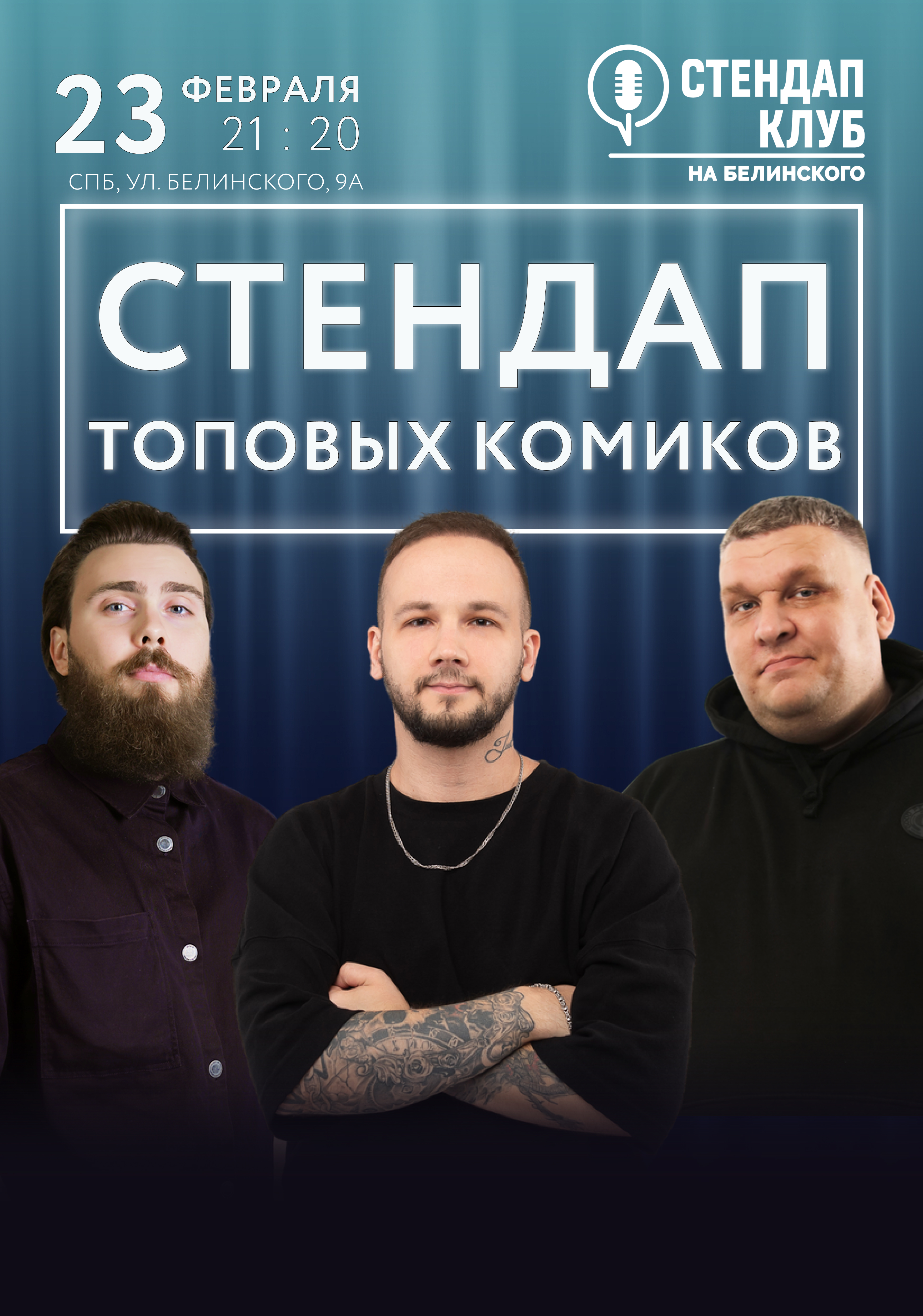 Комики с ТНТ, СТС, Labelcom выступят «без цензуры» со своими лучшими и свежими шутками. В составе только лучшие из ТОП 10 комиков Питера. Вы погрузитесь в атмосферу настоящей, живой стендап комедии от самых опытных комиков Санкт-Петербурга и Москвы, с большим бэкграундом и эфирами на телепроектах ТНТ, СТС и Ютуб! Так же на мероприятии будет призовой розыгрыш для участников.