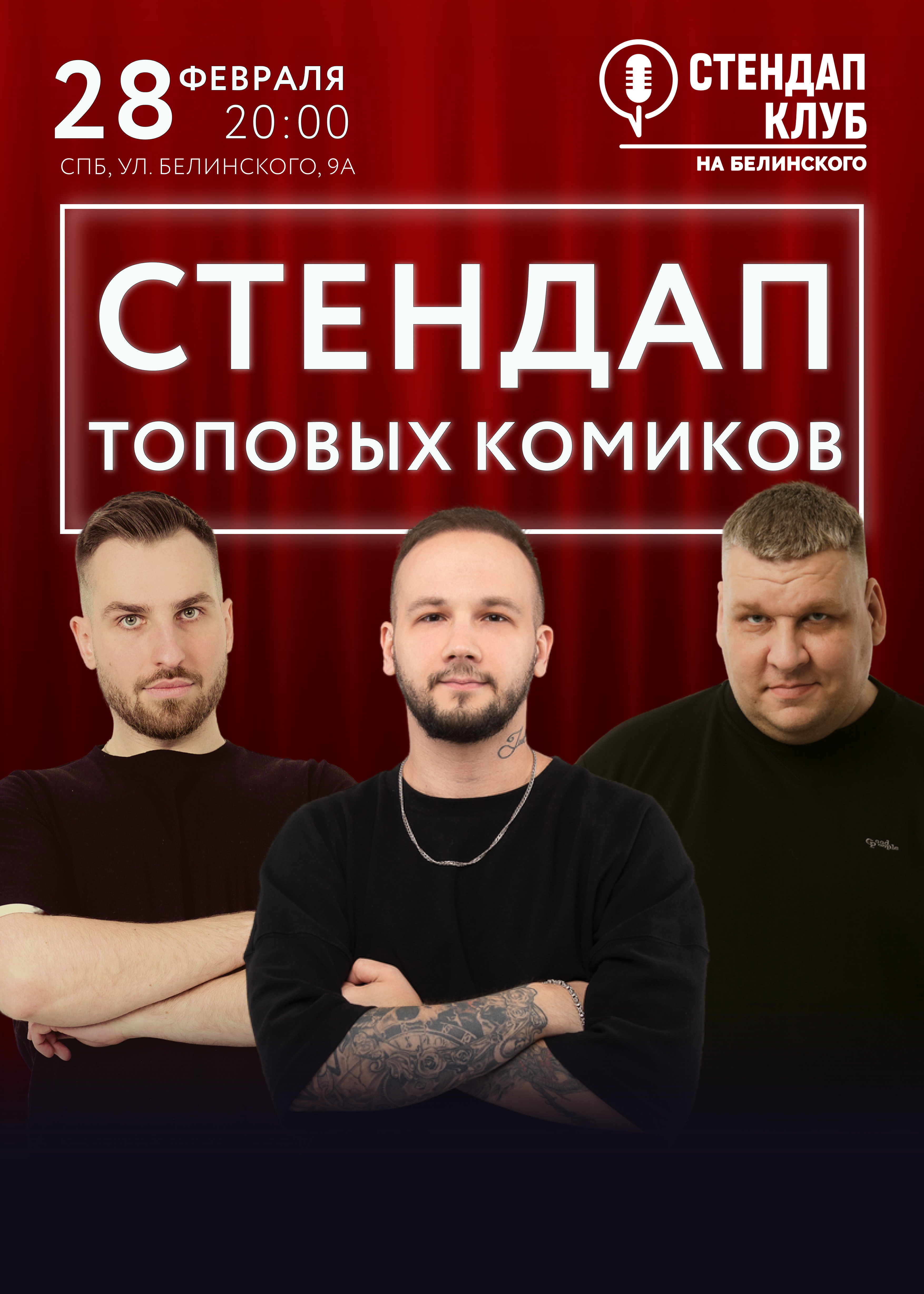 Комики с ТНТ, СТС, Labelcom выступят «без цензуры» со своими лучшими и свежими шутками. В составе только лучшие из ТОП 10 комиков Питера. Вы погрузитесь в атмосферу настоящей, живой стендап комедии от самых опытных комиков Санкт-Петербурга и Москвы, с большим бэкграундом и эфирами на телепроектах ТНТ, СТС и Ютуб! Так же на мероприятии будет призовой розыгрыш для участников.