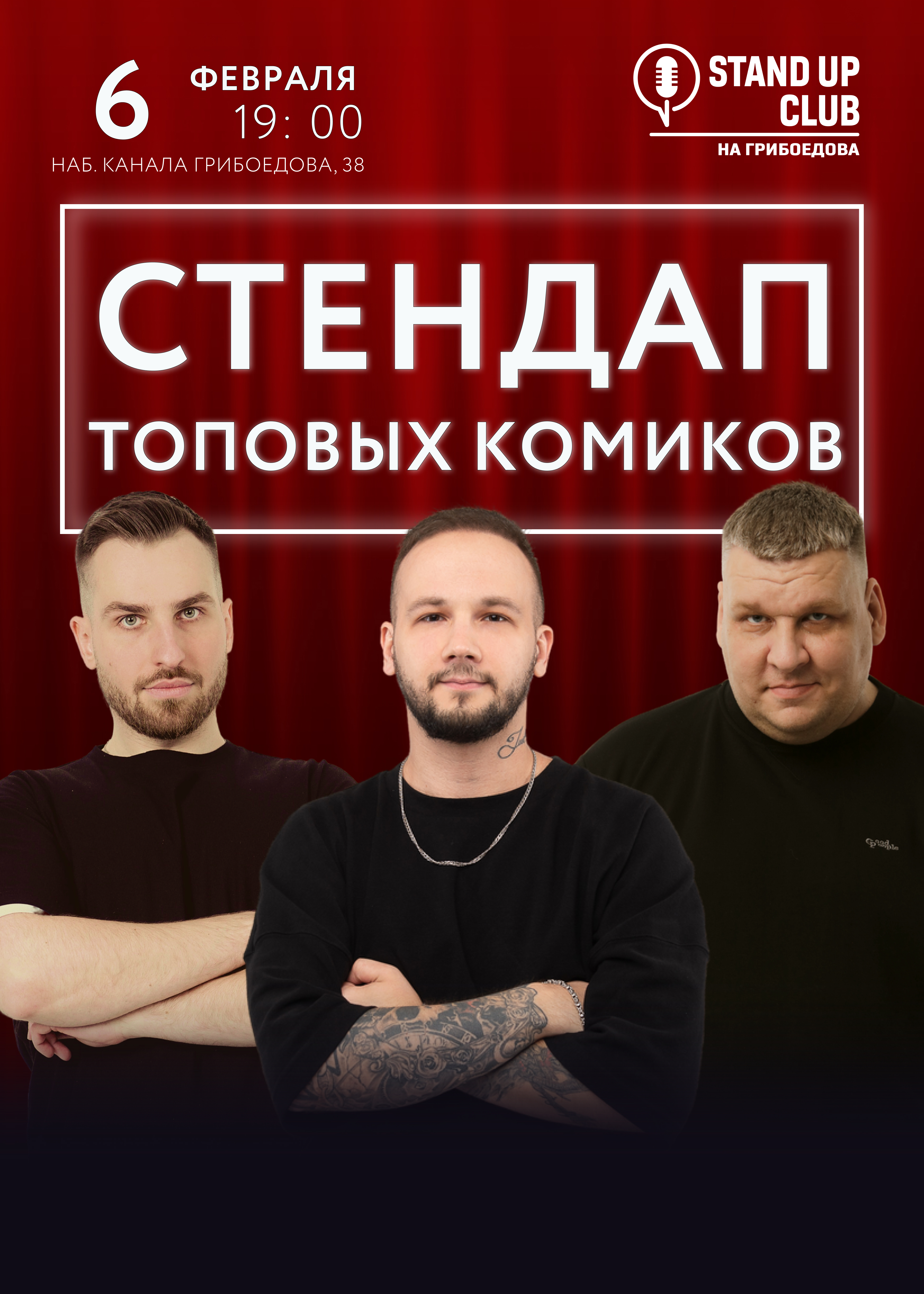 Комики с ТНТ, СТС, Labelcom выступят «без цензуры» со своими лучшими и свежими шутками. В составе только лучшие из ТОП 10 комиков Питера. Вы погрузитесь в атмосферу настоящей, живой стендап комедии от самых опытных комиков Санкт-Петербурга и Москвы, с большим бэкграундом и эфирами на телепроектах ТНТ, СТС и Ютуб! Так же на мероприятии будет призовой розыгрыш для участников.
