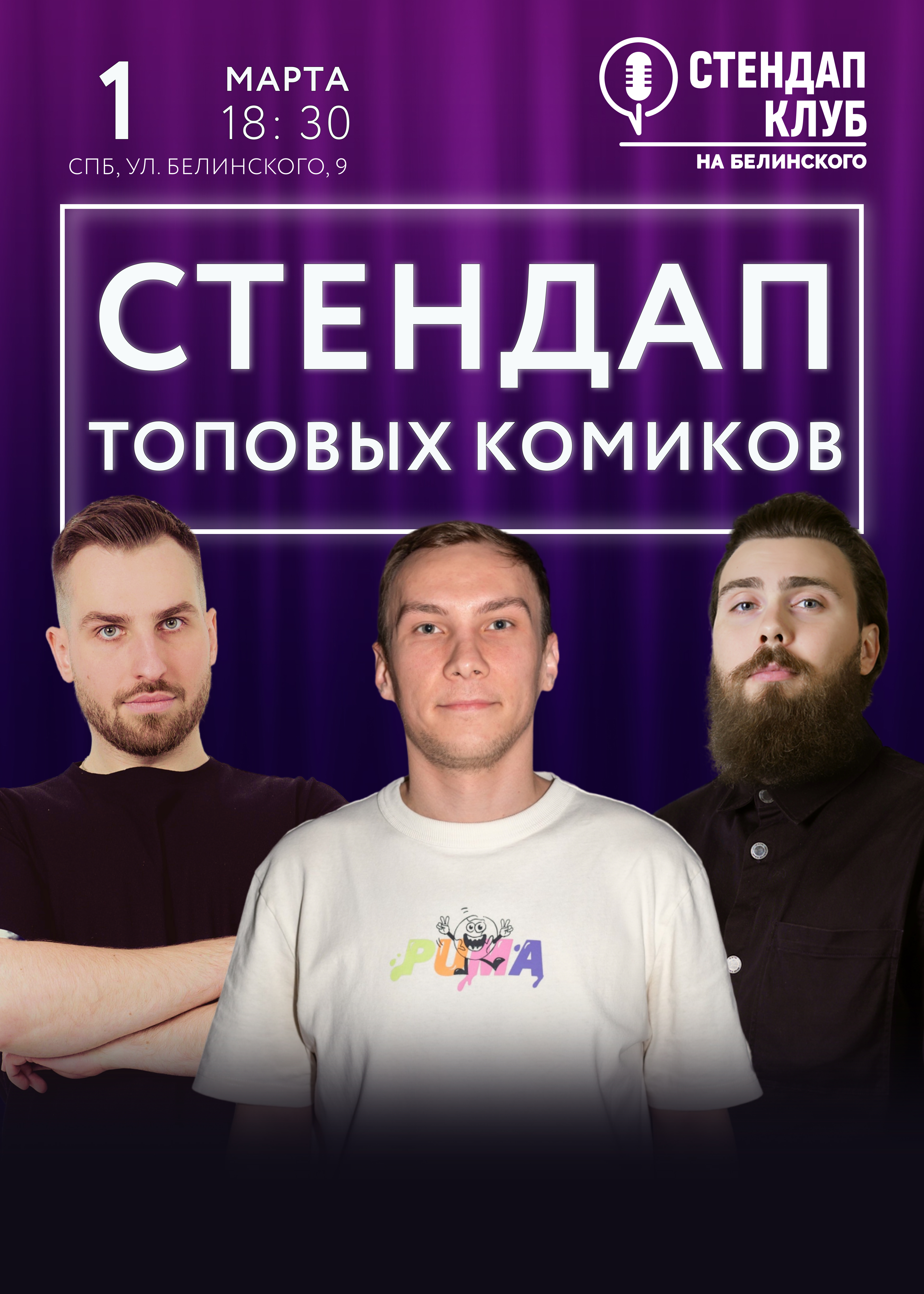 Комики с ТНТ, СТС, Labelcom выступят «без цензуры» со своими лучшими и свежими шутками. В составе только лучшие из ТОП 10 комиков Питера. Вы погрузитесь в атмосферу настоящей, живой стендап комедии от самых опытных комиков Санкт-Петербурга и Москвы, с большим бэкграундом и эфирами на телепроектах ТНТ, СТС и Ютуб! Так же на мероприятии будет призовой розыгрыш для участников.