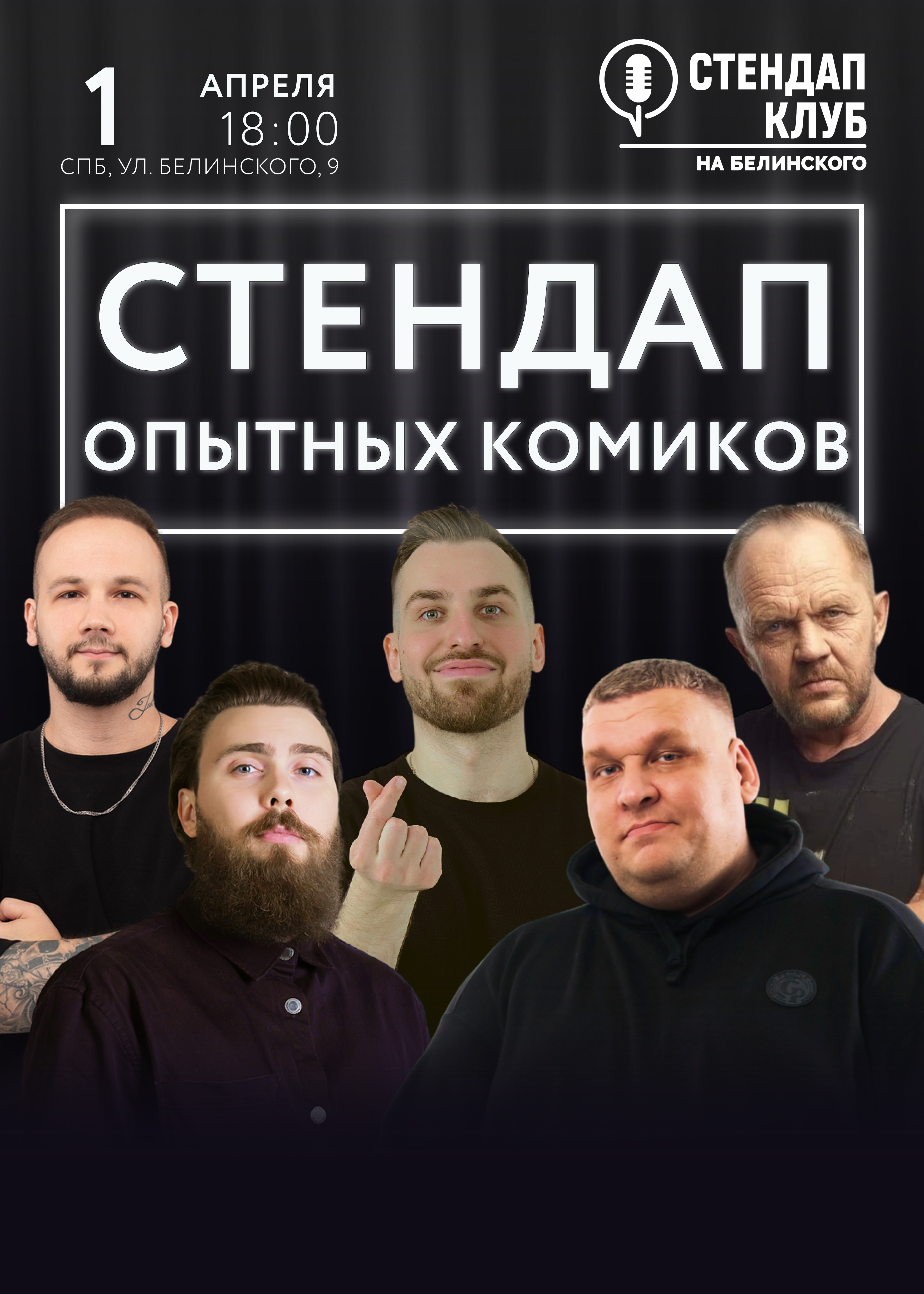 Только опытные, топовые комики СПб и МСК, участники популярные ТВ и Ютуб-шоу, ТНТ, СТС, Labelcom, состав скрыт, это профессионалы петербургской и московской стендап-комедии. Выступят 4 комика с более жёсткими, чёрными шутками. С пятницы по воскресенье — только отборный и проверенный материал.