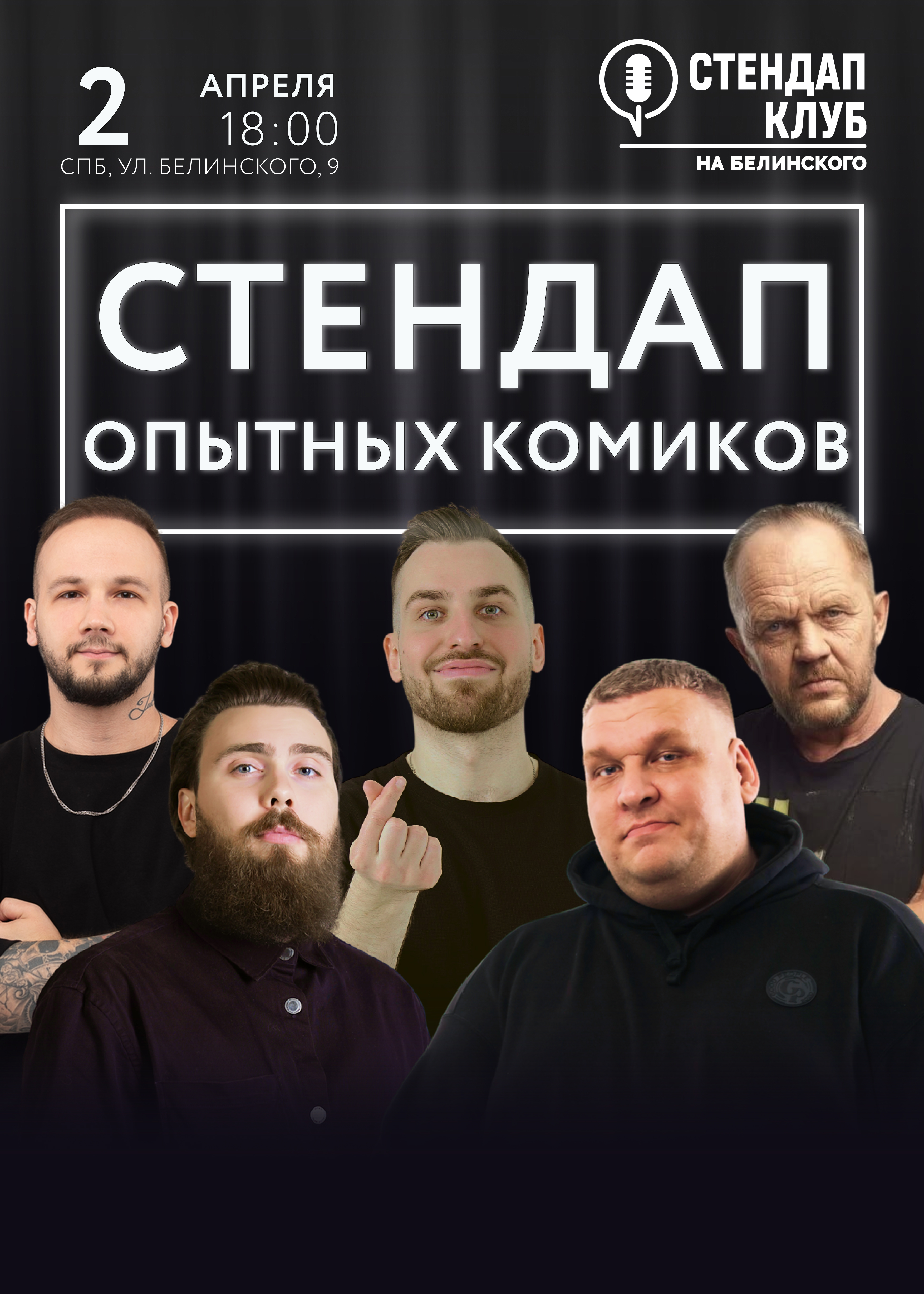 Только опытные, топовые комики СПб и МСК, участники популярные ТВ и Ютуб-шоу, ТНТ, СТС, Labelcom, состав скрыт, это профессионалы петербургской и московской стендап-комедии. Выступят 4 комика с более жёсткими, чёрными шутками. С пятницы по воскресенье — только отборный и проверенный материал.