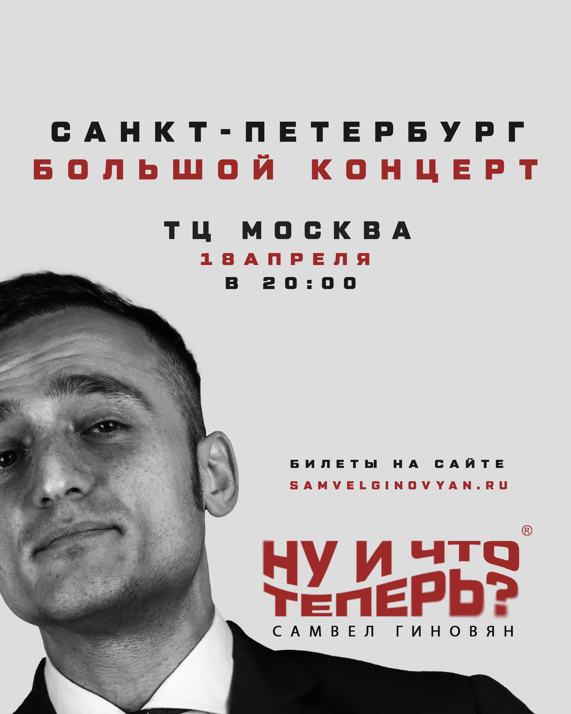Самвел Гиновян — самый характерный, остроумный и ироничный стендап-комик российской сцены — выступит с сольным концертом. Вы можете знать Самвела по таким проектам, как Standup и «Открытый микрофон» на ТНТ, шоу «Токсики», CrowdWork и многим другим медийным проектам. Но главное, Самвел доверит вам то, что поистине сильно его беспокоит, раскроет все стороны семейной жизни и поделится своим чётким мнением о вещах, которые так сильно всех нас волнуют.