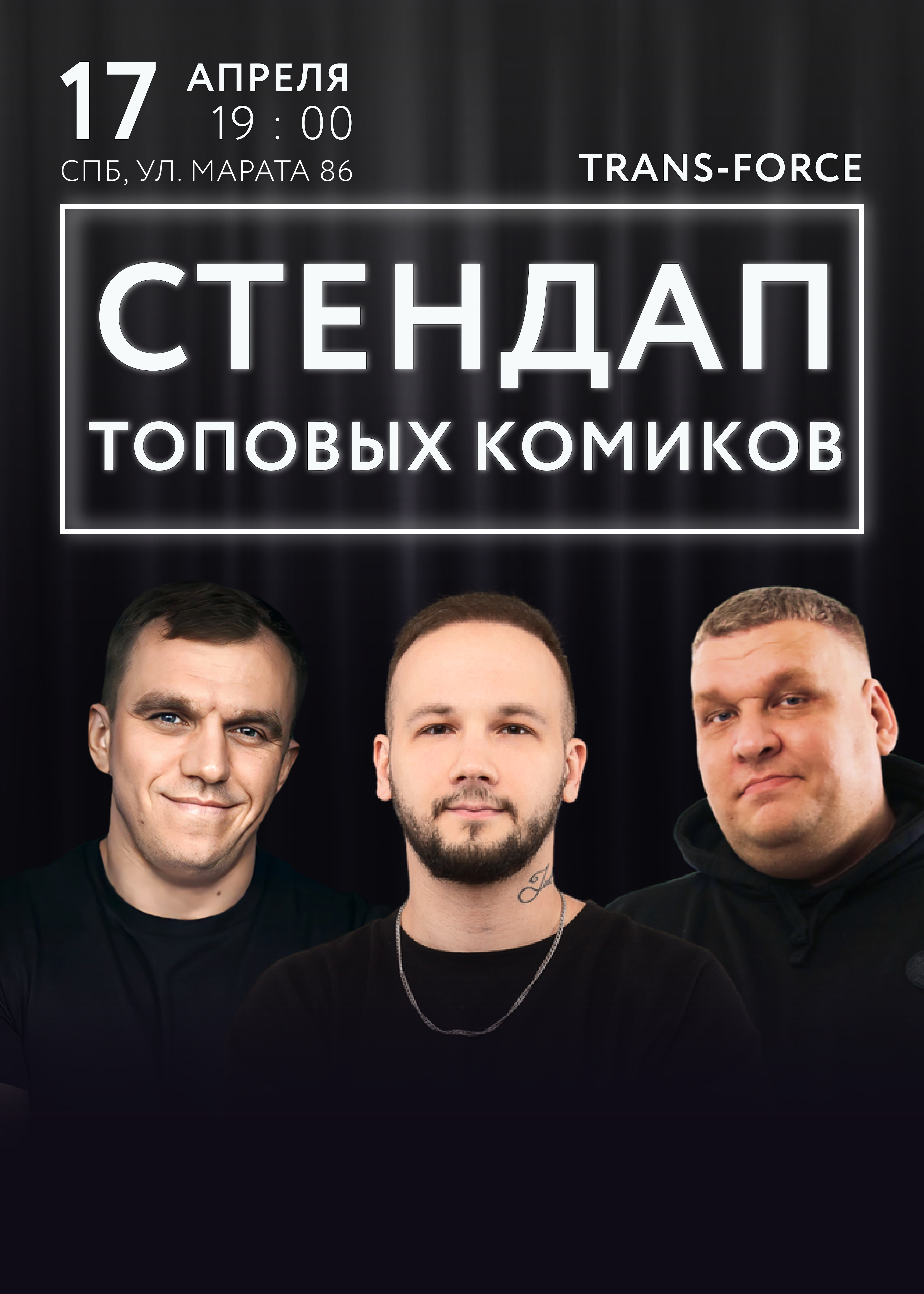Комики с ТНТ, СТС, Labelcom выступят «без цензуры» со своими лучшими и свежими шутками. В составе только лучшие из ТОП 10 комиков Питера. Вы погрузитесь в атмосферу настоящей, живой стендап комедии от самых опытных комиков Санкт-Петербурга и Москвы, с большим бэкграундом и эфирами на телепроектах ТНТ, СТС и Ютуб! Так же на мероприятии будет призовой розыгрыш для участников.